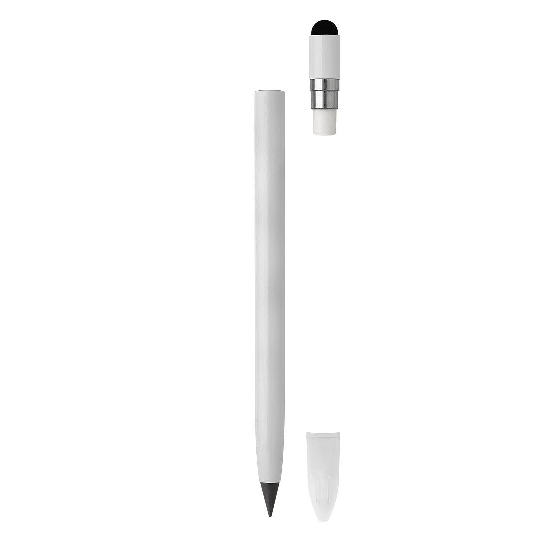 INGRID, metalna „touch“ olovka sa gumicom, bela