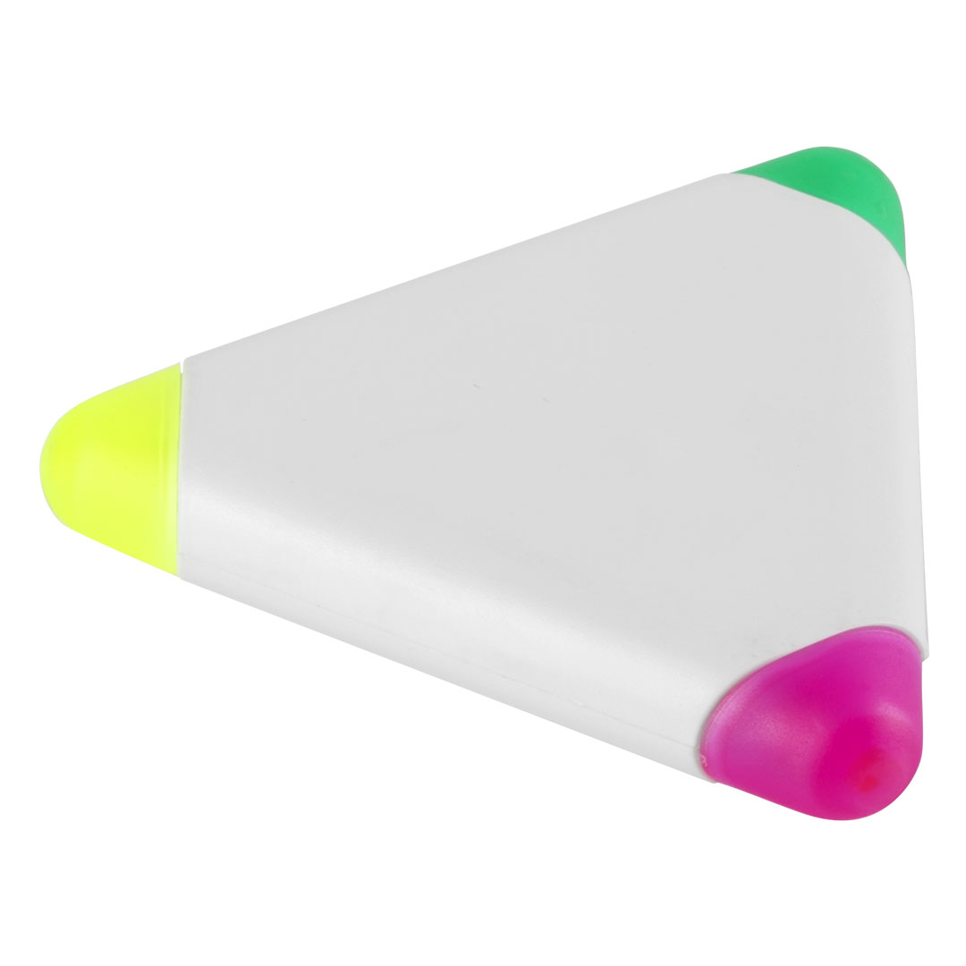 Marker, 3/1 Description: Set of markers with holder. Including 3 fluorescent markers in an original design and a white color holder with a wide printing area. In triangle shape, pink, blue, and yellow colors, Gross Weight of the product: 0.04 Kg, Pac